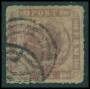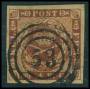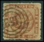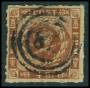 1858. 4 sk. brun, bredrandet med retvendt stp.