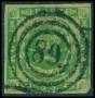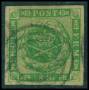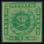 1858. 8 sk. grøn med pragt nr. stp. 89: Marstal.