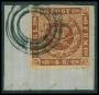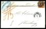 1863. 4 Skilling, stukken kant på rekommanderet brev sendt fra Hamburg, 12.9.1863 til Flensburg. Brevporto 4 Skilling og reg-gebyr 8 Skilling påskrevet.