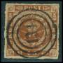 1863. 4 sk. brun, lidt rust på bagsiden.