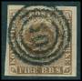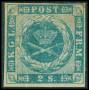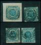 1854. 3 sk. blå med godt nr.stp. 16 Flensborg.