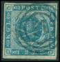 1852. 2 RBS blå Thiele pl. I-5 type 1. Attest Grønlund.