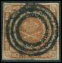 1854. 4 sk. brun med blåt nr. stp. 122: Lütjenburg. Udtalelse CAM.