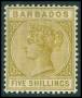 BARBADOS. 1882. 5 sh. olivgul. Mi. 240 €