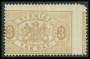 TJENESTE. 1881. 3 øre brun fejlperforeret, minus nø-hjørne uden lim.