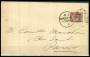 1897. 1 d. lilla i par og ½ d. rødorange på brev til Danmark.