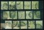 1877. 4 d. olivengrøn. 15 stk. i rimelig kvalitet. AFA 16500,-
