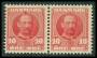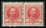 1907. 10 øre rød i par med variant: Opstående hårlok.