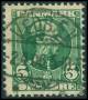 1908. 5 øre grøn i 4-blok med streg i M.