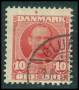 1904. 10 øre rød med manglende skravering til højre for kongen, sjælden.