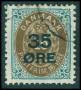 1912. 35/16 øre grå/brun med delvis brudt ovallinie.