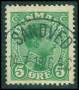 1913. 5 øre grøn LUX stp. med kort tak i nord.