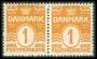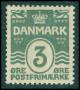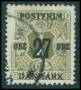 1918. 27/1 øre olivengrå med afrundet mø-hjørne og svigtende tryk i venstre side foroven.