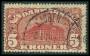 1915. 5 kr. posthus med variant: Farveplet øverst i K i kroner. AFA 2800,-