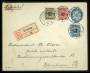 1922. 3 forskellige 27 øre provisorier på opfrankeret R-helsag, lodret fold.