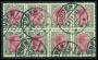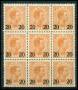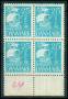 1927. 25 øre lysblå i 4-blok med variant x 2, lidt brunlig lim. AFA 2000,-