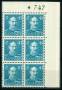 1943. 40 øre blå i 6-blok med variant: Stor farveplet midt i højre margin.