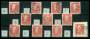 1944. 20 øre brunrød i helark med varianter, gået op i perf.