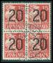 1940. 20/15 øre rød tp. IIA i 4-blok. AFA 360,-