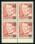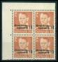 1955. 30/20 øre rød i 4-blok hvor de 2 nedre mærker har lavt overtryk.