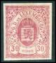 1859. 30 c. rødlilla uden lim forfalskning fra Album De Facimiles med officielle forfalskninger udgivet af Philatelist Unionen i Geneve i 1928 i et oplag på kun 500 stk.