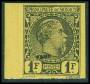 1885. 1 fr. sort, gullig forfalskning fra Album De Facimiles med officielle forfalskninger udgivet af Philatelist Unionen i Geneve i 1928 i et oplag på kun 500 stk.