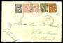 1891. Dekorativt brev til Frankrig med 5 forskellige mærker inkl. 5 r.