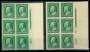 USA. 1908. 1 c. grøn i utakket 2 stk. 6-blokke med pladenr. 4975 og 5380. Sc. 124 $