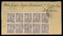 1920. 1 Leu violet i 10-blok på bagsiden af brev sendt til Danmark.