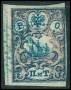 RUSSISK POST I LEVANTEN. LOKALPOST. (2 pi) blå/rød, Dampskib og ørn i blankt felt. Beklippet med lille tyndhed. AFA 2.000,-