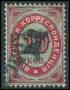 RUSSISK POST I LEVANTEN. STATSPOST. 8/10 k.karmin/mørkgrøn, provisorium. Blåt overtryk. Blæk annulleret. AFA 800,-