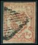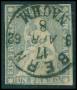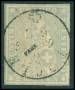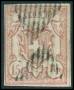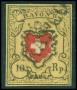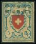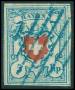 1851. 5 rp. blå/rød med flot Luxern gitterstempel. Attest Hermann.