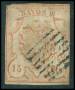 1852. 15 rp. rød små tal tangeret. AFA 5000,-