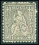 1867. Siddende Helvetia, 40 Centimes, grå. Pragt-annulleret LOCLE 6.IV.81.
