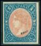 1865. 12 cu. blå/rød uden lim forfalskning fra Album De Facimiles med officielle forfalskninger udgivet af Philatelist Unionen i Geneve i 1928 i et oplag på kun 500 stk.