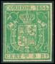 1852. 5 r. grøn uden lim forfalskning fra Album De Facimiles med officielle forfalskninger udgivet af Philatelist Unionen i Geneve i 1928 i et oplag på kun 500 stk.