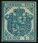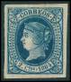 1854. 1 r. mørkblå uden lim forfalskning fra Album De Facimiles med officielle forfalskninger udgivet af Philatelist Unionen i Geneve i 1928 i et oplag på kun 500 stk.