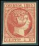 1865. 19 cu. brun/rød uden lim med omv. midterstykke forfalskning fra Album De Facimiles med officielle forfalskninger udgivet af Philatelist Unionen i Geneve i 1928 i et oplag på kun 500 stk.