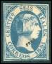 1851. 6 r. blå uden lim forfalskning fra Album De Facimiles med officielle forfalskninger udgivet af Philatelist Unionen i Geneve i 1928 i et oplag på kun 500 stk.