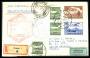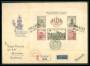 1955. PRAGA Frimærkeudstilling, minikar, takket og utakket. På 2 stk. rekommanderede luftpostbrev sendt fra PRAHA 11.IX.1955 og 25.IX.1955 til Brisbane i Australien.