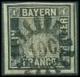 BAYERN. 1849. 1 kr. sort repareret. Udtalelse Maria Brettl. AFA 20000,-