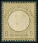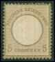 1872. 5 gr. gråbrun, Lille brystskjold. AFA 890,-
