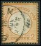 1872. 2 kr. orangegul med lille tyndhed. AFA 23850,-