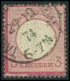1872. 3 kr. karmin med stsor hvid streg i syd.