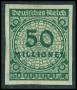 1923. 50 mill. mørkgrøn. Utakket. Mi. 70 €