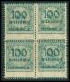 1923. 100 mn. mk. grå i fejlperforeret 4-blok.