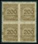 1923. 200 mn. mk. brun i 4-blok med ekstra 0 påtrykt i venstre side.