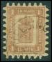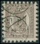 1866-67. Våbentype, 5 Penni, brun. Blækannulleret og med kludetakning.
