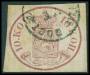 1856. 10 kop. rød med 2 små tyndheder, det ene uden for mærkebilledet. AFA 6500,-