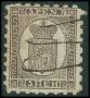 1866-67. Våbentype, 8 Penni, sort på grøn. Blækannulleret.